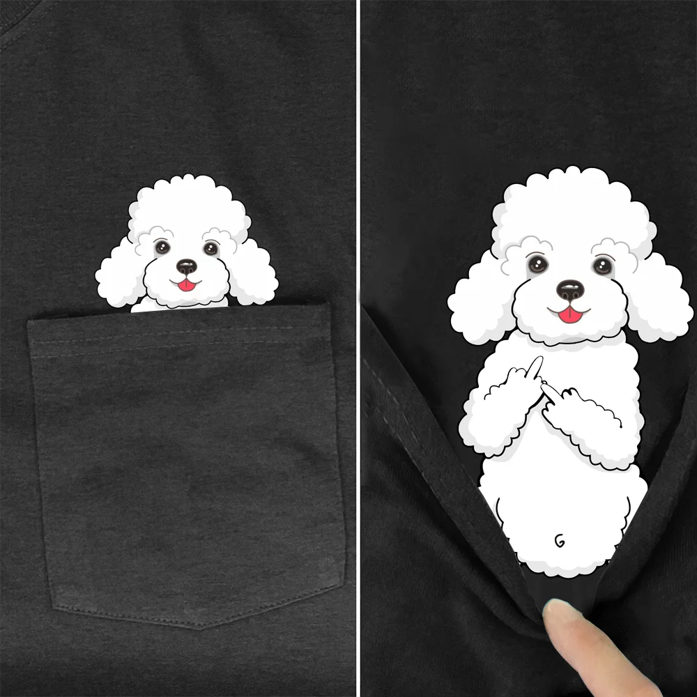 CLOOCL Brown Poodle T-Shirt Pocket Animals Dogs Printed T-shirt Men's for Women Shirts Hip Hop Tops Cotton Tees